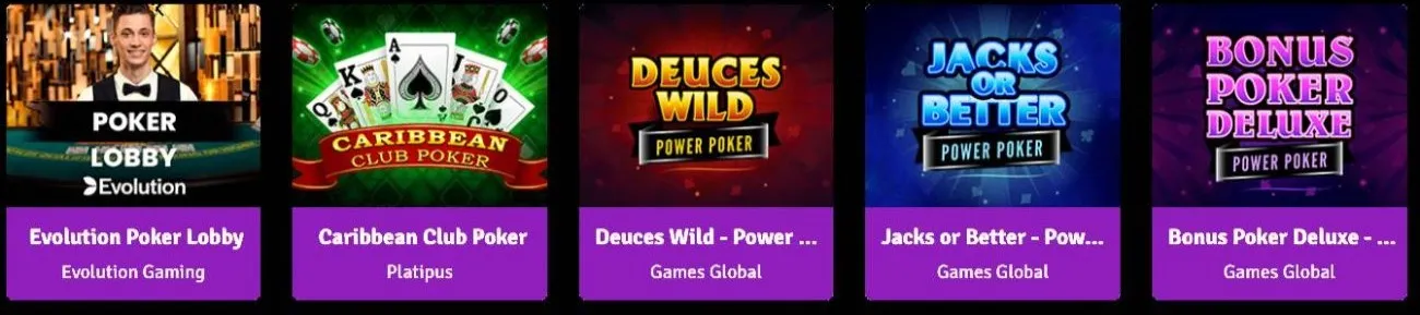 이 섹션은 슬롯 게임 못지 않게 인상적입니다. 여기에는 100개 이상의 다양한 옵션이 있어 여러 카테고리의 사용자들이 즐길 수 있습니다. 등록 후, 플레이어들은 룰렛, 포커, 블랙잭 등 클래식 게임을 포함한 다양한 도박 게임에 접근할 수 있습니다. 각 게임은 전통적인 방식과 현대적인 방식으로 제공됩니다. 가장 인기 있는 게임 옵션은 다음과 같습니다: